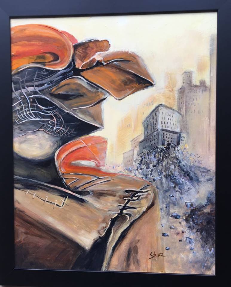 Méret: 40x50 cm. Kivitel: akril, farostlemez. Keretezve.